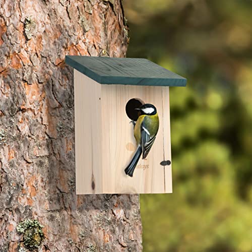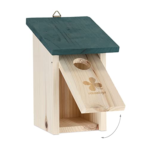 Relaxdays Casetta per Uccelli, Nido in Legno d'Abete, da Appendere in Giardino, Foro d'Ingresso D: 35 mm, Naturale Verde