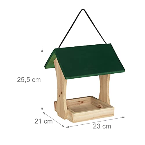 Relaxdays Casetta per Uccellini, in Legno d'Abete, HLP 25,5x23x21cm, da Esterno, Decorazione da Giardino, Verde/Naturale