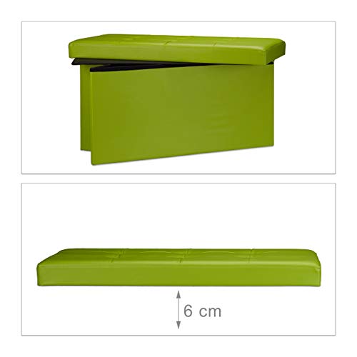 Relaxdays Cassapanca Contenitore, Pouf Pieghevole in Similpelle, HxLxP 38 x 76 x 38 cm, Panca con Coperchio, Verde