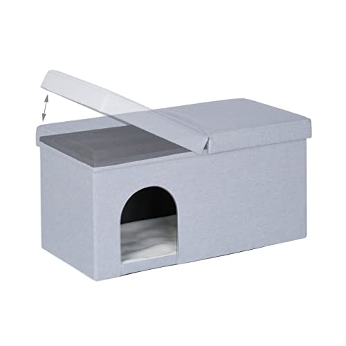 Relaxdays Cassapanca con Cuccia per Gatti e Cani Piccoli, Panca con Tana per Animali, HLP 38,5 x 74,5 x 37 cm, Grigio
