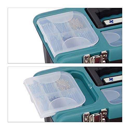 Relaxdays Cassetta degli Attrezzi Vuota, con Manici, in Plastica, Richiudibile, Valigetta HxLxP: 13 x 33 x 18 cm, Nero-Verde
