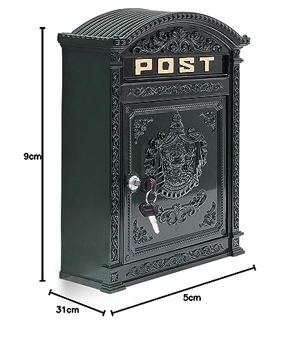 Relaxdays Cassetta delle Lettere, HLP: 44,5 x 31 x 9,5 cm, Design Antico con Scritta “POST”, Ampia Casella, Verde