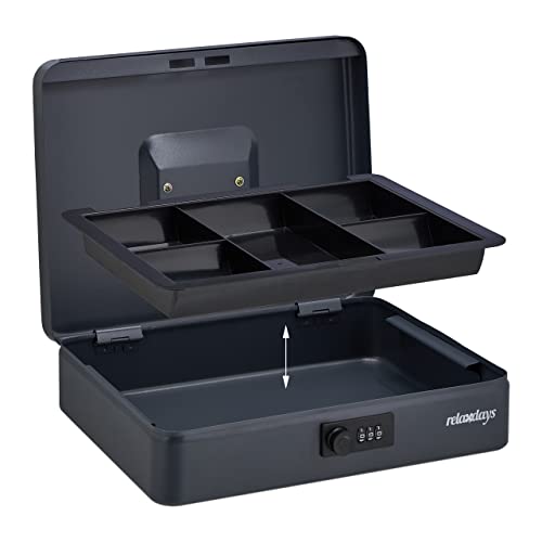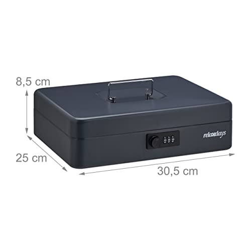 Relaxdays Cassetta Portavalori, Salvadanaio per Monete e Banconete, Combinazione, Acciaio, HLP: 8,5x30,5x25 cm, Grigio, 80% 10% plastica