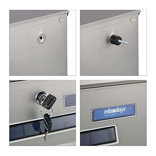 Relaxdays Cassetta della Posta con Illuminazione, con Portariviste, Numero Civico e Targhetta, 33,5x30,5x10 cm, Argento, Acciaio Inossidabile, 1 pz