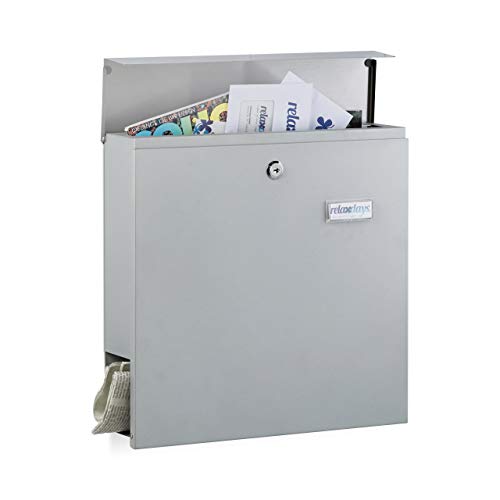 Relaxdays Cassetta della Posta Postale, portagiornali, targhetta Nome, Metallo, Argento, HxLxP: 36,5x37x10,5 cm