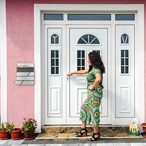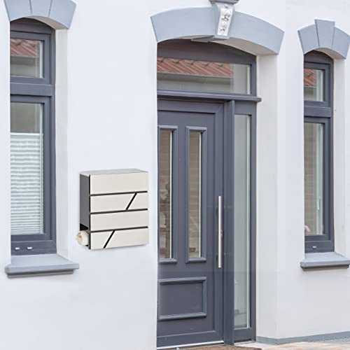 Relaxdays Cassetta della Posta, Scomparto Portagiornali, Porta Lettere in Acciaio, HLP: 37x37x11 cm, 2 Chiavi, Argentato, Inossidabile