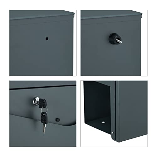 Relaxdays Cassetta della Posta con Scomparto Portagiornali, Postbox Moderna Acciaio, 2 Chiavi, 37x37x11 cm, Antracite