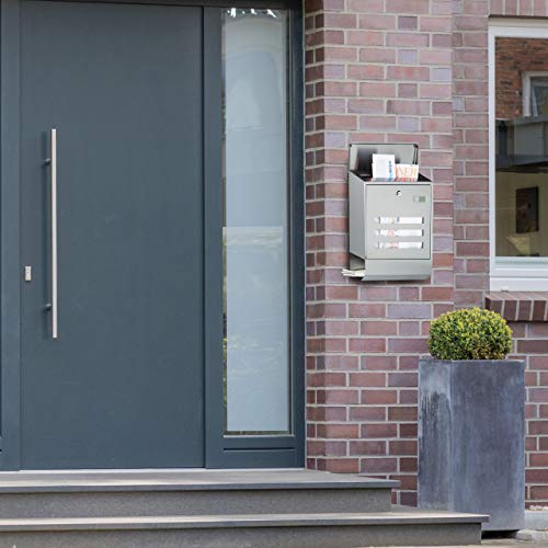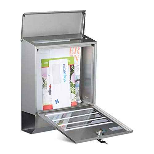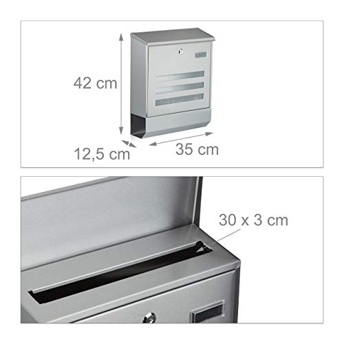 Relaxdays Cassetta Postale con Scomparto per Giornali, Portariviste, in Acciaio Inox, HLP: 42 x 35 x 12,5 cm, Argento, Metallo, 12.5x35x42 cm