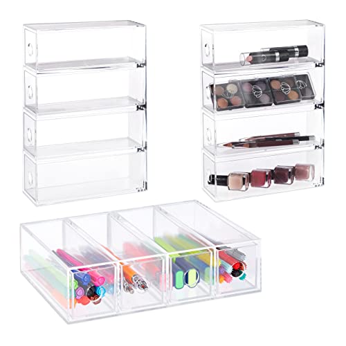Relaxdays Cassettiera Portaoggetti da Scrivania, in Set da 3, Box in Acrilico, HxLxP: 6 x 25 x 17,5 cm, Trasparente, 100% plastica