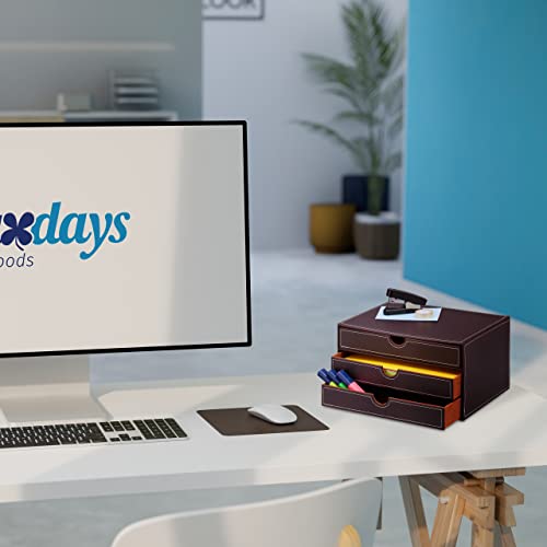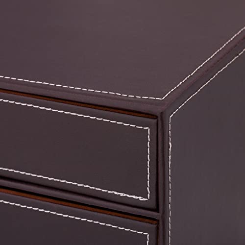 Relaxdays Cassettiera Portaoggetti da Scrivania, 3 Cassetti Similpelle, DIN A4, Box Ufficio HLP 18 x 33 x 25 cm, Marrone, 50% plastica 40% Fibra 10% Poliestere