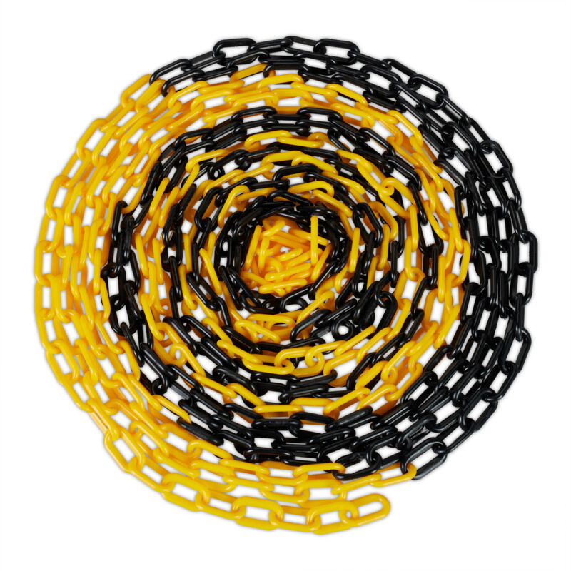 Con la catena in plastica nera e gialla è possibile delimitare diverse aree in modo rapido e sicuro. Il design colorato permette un'elevata visibilità con un ulteriore effetto di avvertimento. La catena è quindi ideale per fare da segnaletica stradale per le aree di lavoro e pericolose, ma anche come barriera per parcheggi privati e vialetti o per dirigere flussi di visitatori all'ingresso di musei o eventi. Grazie al suo peso ridotto, la catena in plastica è facile da trasportare e da maneggiare, anche per creare barriere di grandi dimensioni. Catena per barriere parcheggio in dettaglio - Dimensioni per maglia: 3,5 x 2 cm ca. - Spessore del materiale: 6 mm ca. - Materiale: plastica - Colore: nero, giallo Catena di segnaletica stradale in varie lunghezze - Lunghezza A: 10 m ca., 0,6 kg ca. - Lunghezza B: 20 m ca., 1,1 kg ca. - Lunghezza C: 30 m ca., 1,7 kg ca. - Lunghezza D: 40 m ca., 2,2 kg ca. - Lunghezza E: 50 m ca., 2,8 kg ca. Catena in plastica nera e gialla come transenna