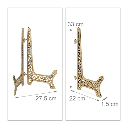 Relaxdays Cavalletto Espositore da Tavolo, Portapiatti, Porta Menù, Supporto Poggia Libri e Foto, Design Vintage, Dorato, 33 x 27,5 cm