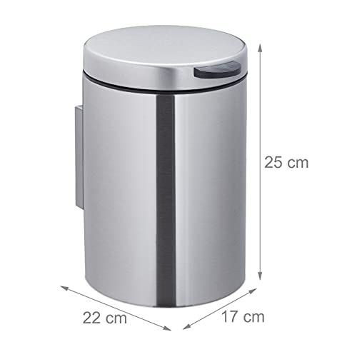 Relaxdays Cestino da Bagno da Muro, 3 Litri, Chiusura Automatica, Secchio Interno Estraibile, in Acciaio, Argentato Nero, 70% Inox 30% plastica, Argento, 1 pz