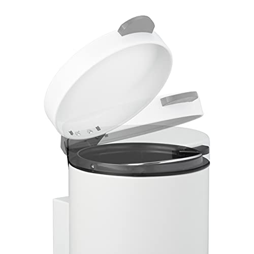 Relaxdays Cestino da Bagno da Muro, 3 Litri, Chiusura Automatica, Secchio Interno Estraibile, Bidone in Acciaio, Bianco, 70% 30% plastica, 1 pz