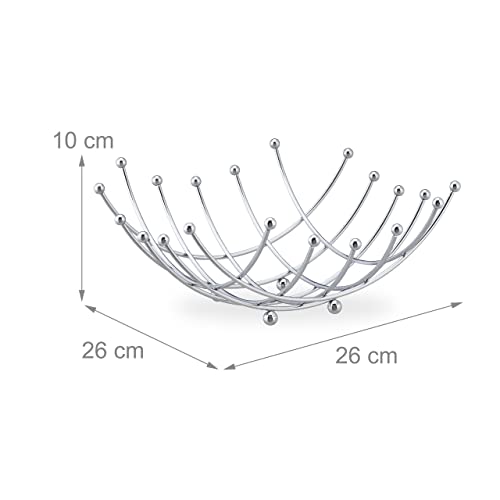 Relaxdays Cestino Portafrutta da Tavolo, Cesta Centrotavola 10 x 26 x 26 cm, Frutta & Verdure, Design Moderno, Argento