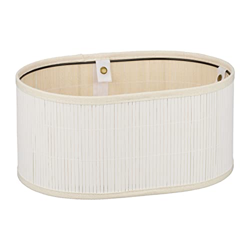 Relaxdays Cestino Portapane in Stoffa, Design Paris HLP: 16x34x24 cm, Cesto in bambù Porta Frutta e Croissant, Bianco, 70% 20% Poliestere 10% Acciaio