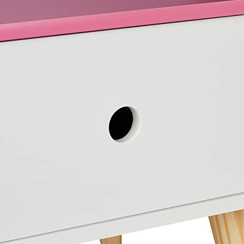Relaxdays Comodino da Letto per Bambini, con Cassetto, HLP 31 x 38 x 30 cm, Cameretta Bimbi, Legno e MDF, Bianco Rosa, 80% Fibra 20%
