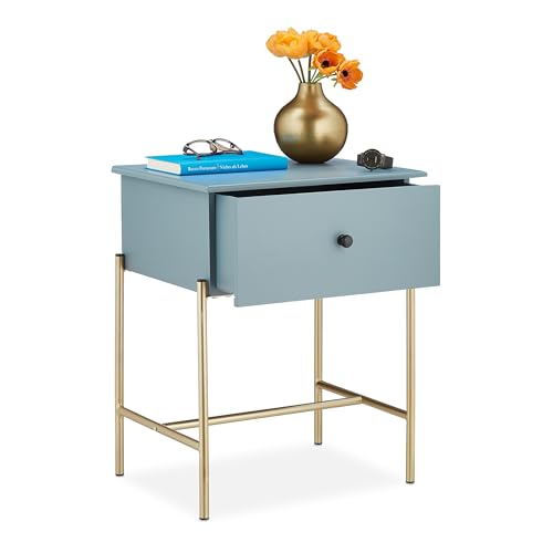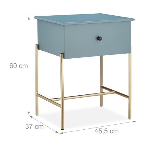 Relaxdays Comodino Notte, con Ampio Cassetto, Moderno, MDF e Ferro, Camera da Letto, HxLxP: 60x45,5x37 cm, Grigio/Dorato, 60% Fibra di Legno 40%