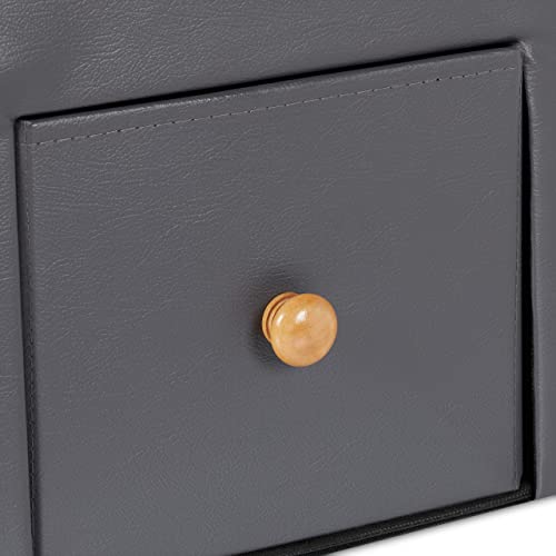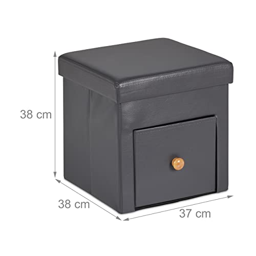 Relaxdays Pouf Contenitore Pieghevole, Sgabello Poggiapiedi Imbottito con Cassetto, Aspetto Pelle, 38x37x38 cm, Grigio, 70% Fibra 20% plastica 10% gommapiuma, 1 pz