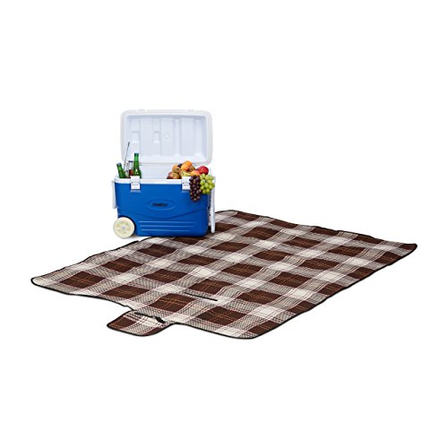 Relaxdays Coperta Picnic Diversi Modelli, Ripiegabile, 35 X 22 X 10, Poliestere, Marrone/Bianco