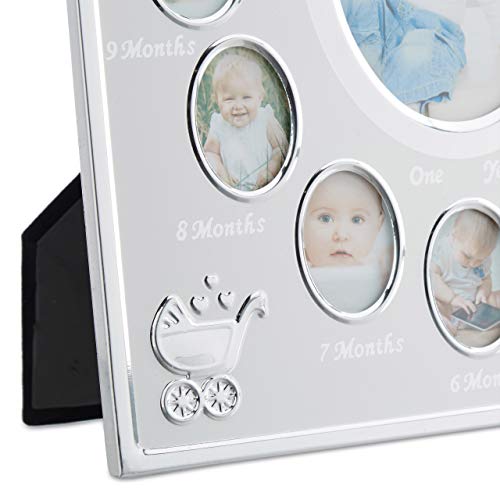 Relaxdays Cornice Portafoto Multipla per Bambini, Primo Anno, da 0 a 12 Mesi, da Appoggio, Alluminio, Bianco, 29 x 24 cm, 9 unità
