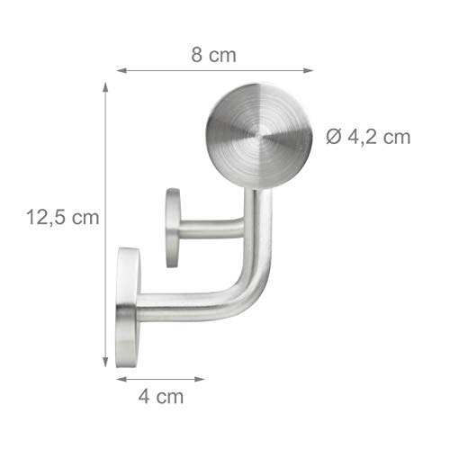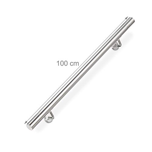 Relaxdays Corrimano, Acciaio Inox 304, Passamano per Ambienti Interni e Esterni, 42 mm, con Supporto, Argento, 100 cm-Ø 42