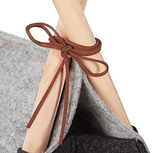 Relaxdays Cuccia per Gatti, Tenda Tipi per Cani Piccoli, Feltro & Legno, con Cuscino, 70,5 x 59,5 x 59 cm, Grigio Chiaro, 1 Pz