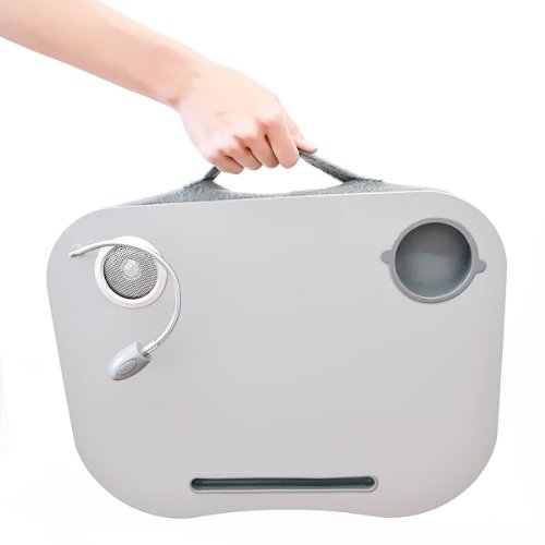 Relaxdays Cuscino Supporto Tavoletta per PC Notebook, con Luce LED e Porta Bicchiere, Legno e Poliestere, Bianco