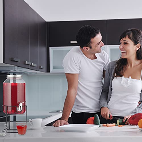 Relaxdays Dispenser per Bevande in Set, Distributore Acqua 3,5 L, Supporto per Erogatore con Rubinetto, Trasparente