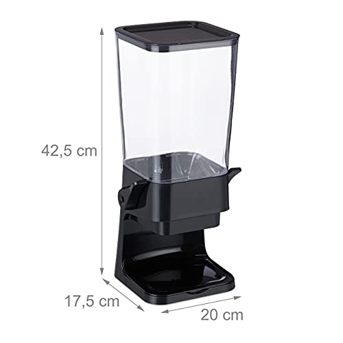 Relaxdays Dispenser per Cereali, Contenitore da 6 L, Distributore Corn Flakes e Dolcetti, HLP 42,5 x 20 x 17,5 cm, Nero, 50% plastica, 1 pz