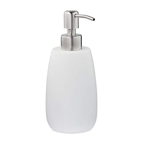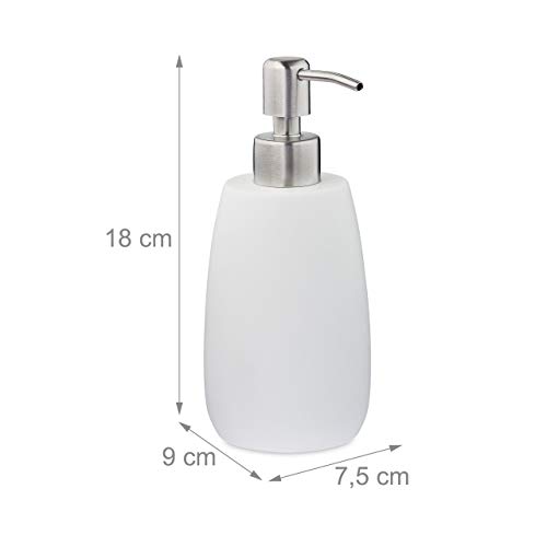Relaxdays Dispenser di Sapone, 300ml, Portasapone Ricaricabile Manuale, Accessorio Home Bagno & Cucina, Rotondo, Bianco, 1 pz