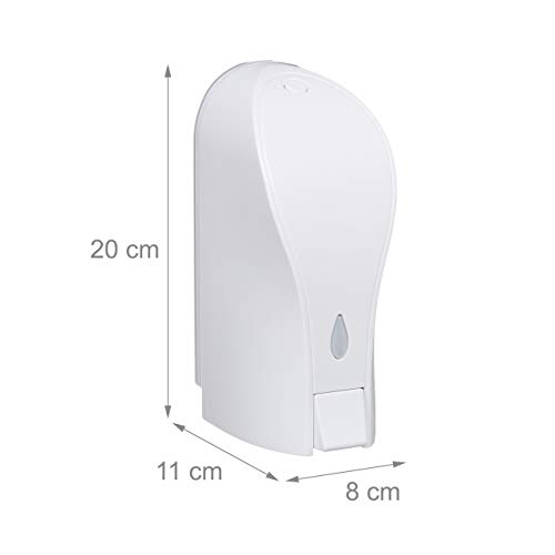 Relaxdays Dispenser di Sapone a Parete, 600 ml, Ricaricabile & Manuale, Dosatore per Bagno & Cucina, Salvaspazio, Bianco