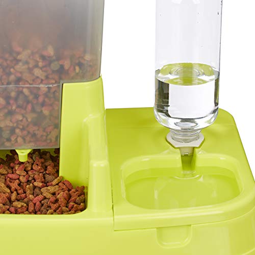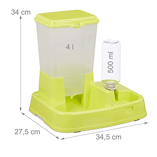 Relaxdays Distributore Automatico di Acqua & Cibo, 2 in 1, per Cani & Gatti, Bottiglia, 4 l, Plastica, Verde, 34x34,5x27,5 cm