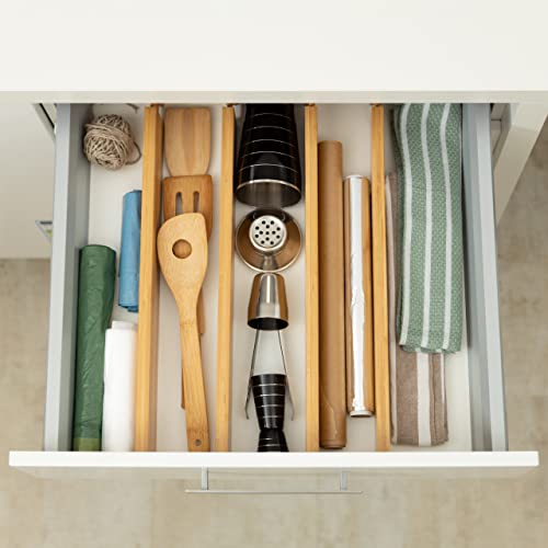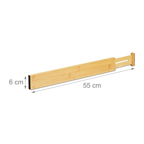 Relaxdays Divisori da Cassetto, Set 4 Separatori da Cucina 6 x 55 cm, Organizer Armadio, Lunghezza Regolabile, Marrone