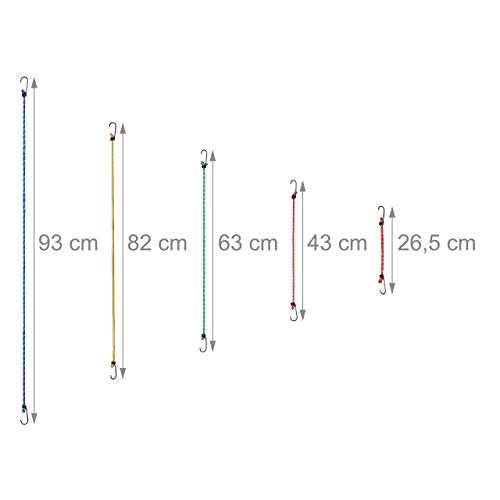 Relaxdays Elastici con Ganci, Set 24 Cavi Portapacchi, Cavi con Molle per Auto & Bici, 5 Misure, Universali, Multicolori
