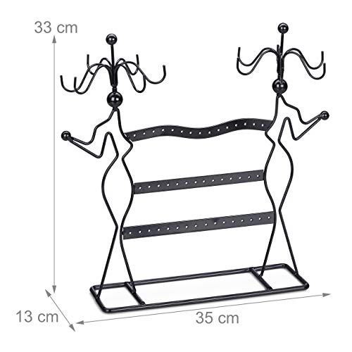 Relaxdays Espositore Gioielli Girevole, Porta Collane, Bracciali & Orecchini da Donna, Organizer da Tavolo, Design Nero