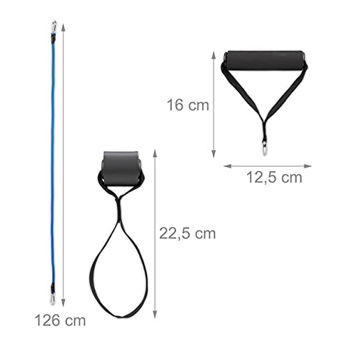 Relaxdays Set da 5 Fasce Elastiche di Resistenza, Fitness, 5 Potenze, Ganci e Cinghie per Allenarsi a Casa, Vari Colori