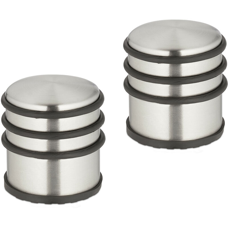 Un fermaporta è un accessorio indispensabile in casa e in ufficio, in quanto permette che le finestre e le porte non si chiudano bruscamente a causa della corrente. La struttura pesante del blocca porte e il rivestimento antiscivolo garantiscono una stabilità ottimale. Gli anelli in gomma proteggono il pavimento, le porte e le finestre da graffi o urti. Set da 2 fermaporta in dettaglio - Misure complessive H x D: 7,5 x 7 cm ca. - Peso per blocca porte: 1,1 kg ca. - Materiale: acciaio inox, ferro, gomma - Colore: argento, nero Blocca porte in acciaio inossidabile - Pratico set da 2 fermaporta dal design classico - Evitano che porte e finestre si chiudano bruscamente - Proteggono il pavimento e le pareti da graffi e urti - Con 3 anelli in gomma - Fondo antiscivolo per una stabilità ottimale - Posizionabili in cucina, in bagno, in corridoio ecc. Contenuto della spedizione - 2x fermaporta - Articoli decorativi non inclusi