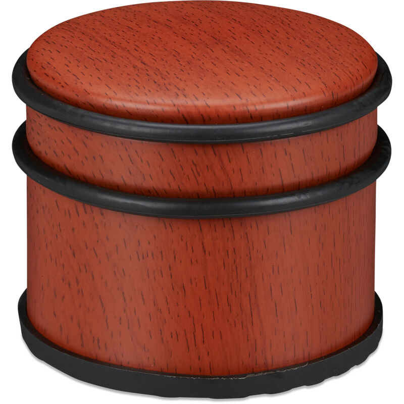 Un fermaporta è un accessorio indispensabile in casa e in ufficio, in quanto fa in modo che porte e porte finestre non si chiudano all'improvviso a causa della corrente. Il peso di questo blocca porte ne garantisce un'ottima tenuta su qualsiasi pavimento. Inoltre il rivestimento in gomma è antiscivolo. Il ferma porte può essere utilizzato su qualsiasi tipo di pavimento, dal laminato al parquet. Inoltre, 3 anelli in gomma fanno in modo che porte e finestre non vengano danneggiate. Fermaporta in dettaglio - Dimensione H x D: 8 x 9,5 cm ca. - Peso: 1,2 kg ca. - Materiale: acciaio, gomma (TPR) - Colore: marrone dai toni rossi dall'aspetto legno Pratico accessorio blocca porta - Protegge porte, pavimenti e pareti da eventuali urti - Dotato di gommini antiscivolo e antigraffio alla base - Con 3 anelli in gomma rimovibili per non danneggiare porte e finestre - Posizionabile liberamente - per cucina, bagno, corridoio, salotto, ecc. - Impedisce a porte e finestre di chiudersi improvvisamente a