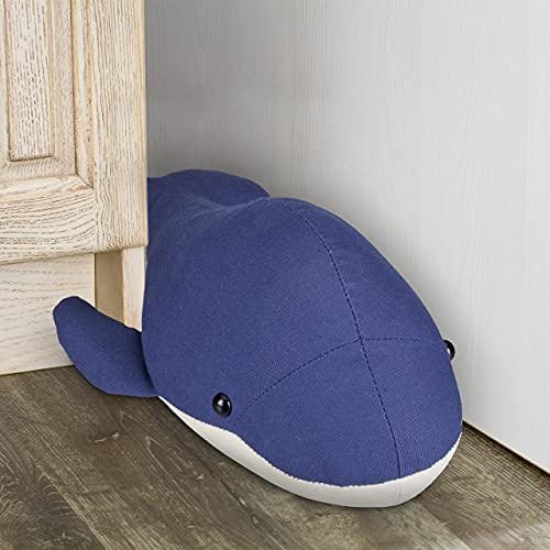Relaxdays Fermaporta a Forma di Balena, Imbottitura di Sabbia, Blocca Portafinestra da Terra, Interni, Beige/Blu Scuro, Poliestere, 1 pz