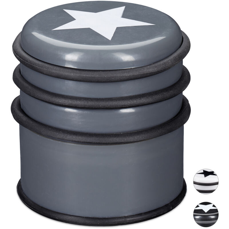 Il fermaporte in plastica è l'accessorio ideale per la vostra casa: impedisce a porte e finestre di chiudersi bruscamente in caso di forti correnti di vento. Inoltre il materiale pesante e massiccio lo rende estremamente stabile. Il rivestimento in gomma antiscivolo fa in modo che mantenga una tenuta salda, mentre i 3 anelli in gomma rimovibili proteggono mobili, porte e finestre dai graffi. Infine il blocca porta è decorato con un'elegante stella, che gli dona un aspetto originale. 10x Fermaporta in dettaglio - Misure totali HxD: 8 x 7 cm ca. - Peso: 800 g ca. - Materiale: plastica (PP), gomma - Grigio Scuro Pratico blocca porta a pavimento - Impedisce a porte e finestre di chiudersi - Protegge porte, pavimenti e pareti da eventuali urti - Base protettiva antiscivolo e antigraffio - Posizionabile liberamente - Design elegante con decorazione a forma di stella Contenuto della confezione - 10x fermaporta - Articoli aggiuntivi non inclusi nel contenuto della confezione
