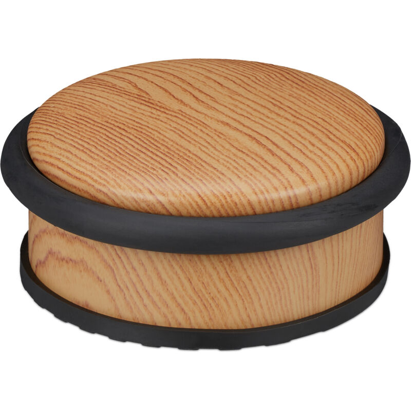 Un fermaporta è un accessorio indispensabile in casa e in ufficio, in quanto fa in modo che porte e porte finestre non si chiudano all'improvviso a causa della corrente. Il peso di questo blocca porte ne garantisce un'ottima tenuta su qualsiasi pavimento. Inoltre il rivestimento in gomma è antiscivolo. Il ferma porte può essere utilizzato su qualsiasi tipo di pavimento, dal laminato al parquet. L'anello di gomma farà in modo che porte e finestre non vengano danneggiate. Fermaporta in dettaglio - Dimensione H x D: 5 x 10.5 cm ca. - Peso: 1.1 kg ca. - Materiale: acciaio, gomma (TPR) - Colore: marrone chiaro dall'aspetto legno Pratico accessorio blocca porta - Antiscivolo grazie alla base gommata - Anello protettivo che circonda la struttura - Protegge porte, pavimenti e pareti da eventuali urti - Posizionabile liberamente - per cucina, bagno, corridoio, salotto, ecc. - Impedisce a porte e finestre di chiudersi improvvisamente a causa della corrente - Design elegante grazie all'aspetto
