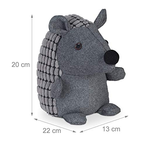 Relaxdays Fermaporta a Riccio, Peso in Stoffa per Pavimento, Blocca Porta & Finestra da Interno, Morbido & Alto, Grigio, Poliestere 50% Sabbia, 1 pz