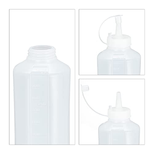 Relaxdays Flacone Dosatore, Set da 4, 1000 ml, per Salse, Squeeze Bottle, Dispenser Cucina, in Plastica Trasparente, PP