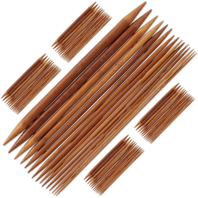 Con il maxi set da 300 aghi potrete lavorare a maglia calze, cappellini e tanto altro con la tecnica del gioco dei ferri. Realizzati interamente in bambù leggero e resistente, il set è composto da gruppi di 20 aghi in 15 misure diverse. Il materiale permette un lavoro più confortevole e silenzioso, le doppie punte ben levigate permettono una presa più semplice della maglia mentre la superficie ruvida in legno ne impedisce la fuori uscita. Per questo motivo che il set è particolarmente adatto ai principianti ed è l'ideale in qualsiasi momento, per lavori a maglia larga o stretta. Set da 300 aghi da calza in dettaglio - Lunghezza per ago: 20 cm ca. - 15 spessori: 2 mm, 2,25 mm, 2,75 mm, 3,25 mm, 3,5 mm, 3,75 mm, 4 mm, 4,5 mm, 5 mm, 5,5 mm, 6 mm, 6,5 mm, 8 mm, 9 mm, 10 mm - Peso per 5 aghi da maglia: min. 3 g & max. 40 g - Materiale: bambù - Colore: naturale Set da gioco dei ferri a maglia - 20 aghi da calza con 15 spessori diversi - Set leggerissimo di aghi in bambù per maggiore