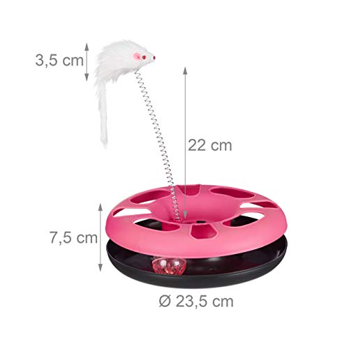 Relaxdays 2x Gioco per Gatti con Topo, Percorso per Pallina con Sonaglio, Istinto alla Caccia e al Gioco, Rosa