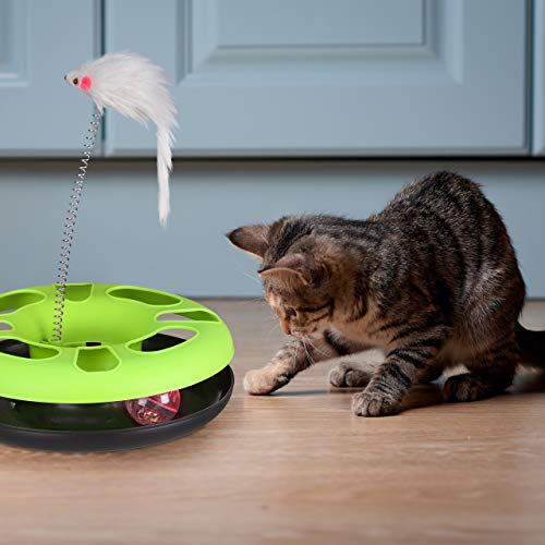 Relaxdays 3x Gioco per Gatti con Topo, Percorso per Pallina con Sonaglio, Istinto alla Caccia e al Gioco, Verde