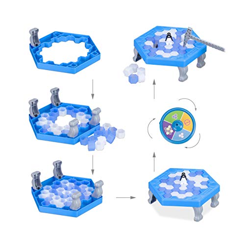 Relaxdays Gioco Pinguino in Trappola, Penguin Trap, Giochi Educativi per Adulti & Bambini dai 3 Anni, 2-4 Giocatori, blu