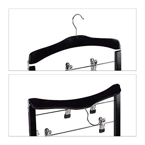 Relaxdays Set da 3 Grucce Multiple Salvaspazio, Gancio Girevole a 360°, con Pinze, Gonne e Pantaloni, Legno, Nere