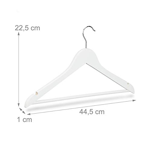 Relaxdays Set da 30 Grucce, Asta per Pantaloni, Gonne, Camicie, Giacche, Gancio Girevole a 360°, in Legno, Bianco